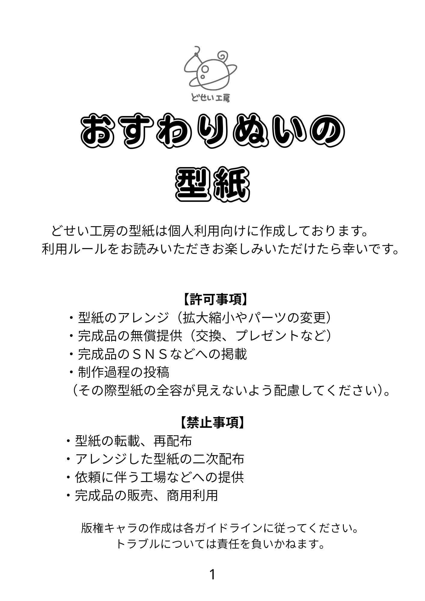 どせい工房オリジナルのおすわりタイプぬいぐるみの型紙です。